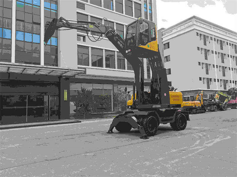 Escavadeira de esteiras sobre rodas JG120S de 12 toneladas para nivelamento e movimentação de materiais em pátios de carvão.
