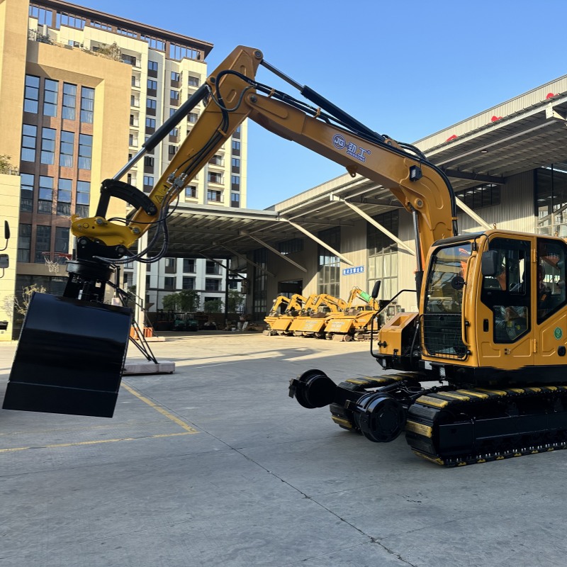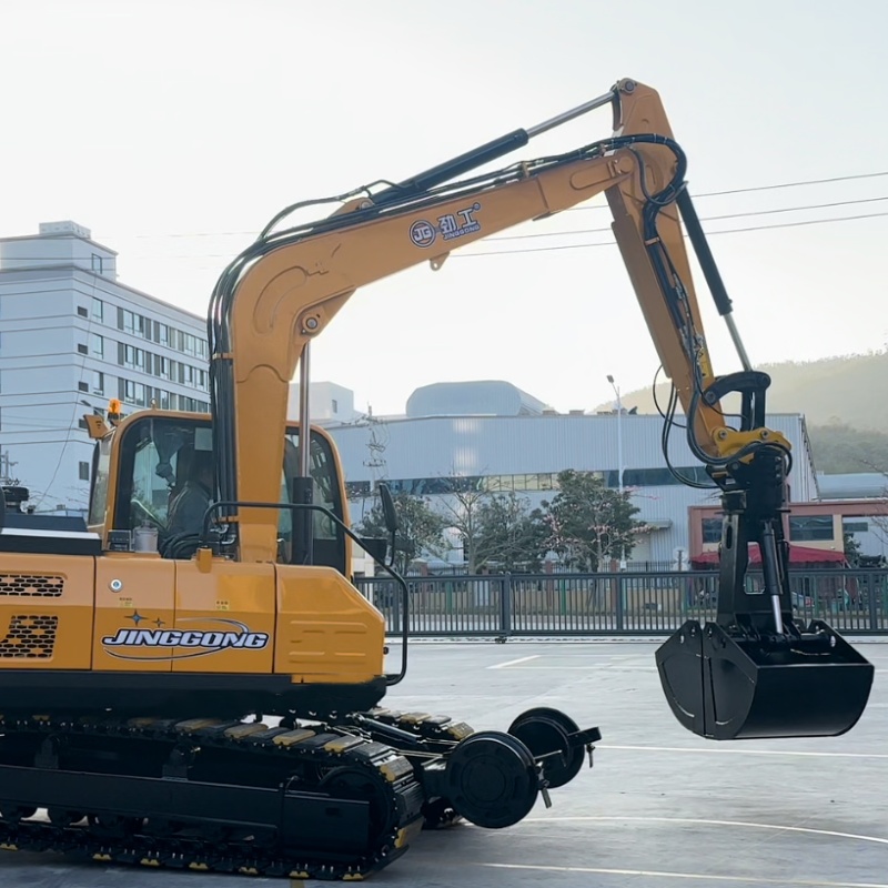 A JG150LT foi projetada para infraestrutura ferroviária de alta carga. Sua garra reforçada de 15 toneladas adota um sistema de acionamento hidráulico de cilindro duplo, capaz de agarrar com precisão grandes quantidades de lastro e rochas de túneis, garantindo a transferência segura e eficiente de materiais na área de limite de altura da rede ferroviária eletrificada. A tecnologia integrada de balanceamento dinâmico do chassi de via ultralarga reduz efetivamente o risco de recalque em solos moles. O design da lança multiarticulada supera o tradicional ângulo morto de escavação e lida facilmente com cenários de construção tridimensionais, como limpeza de pilares de pontes e escavação de valas de drenagem profundas, tornando-se uma ferramenta poderosa para a expansão de ferrovias com múltiplas vias.