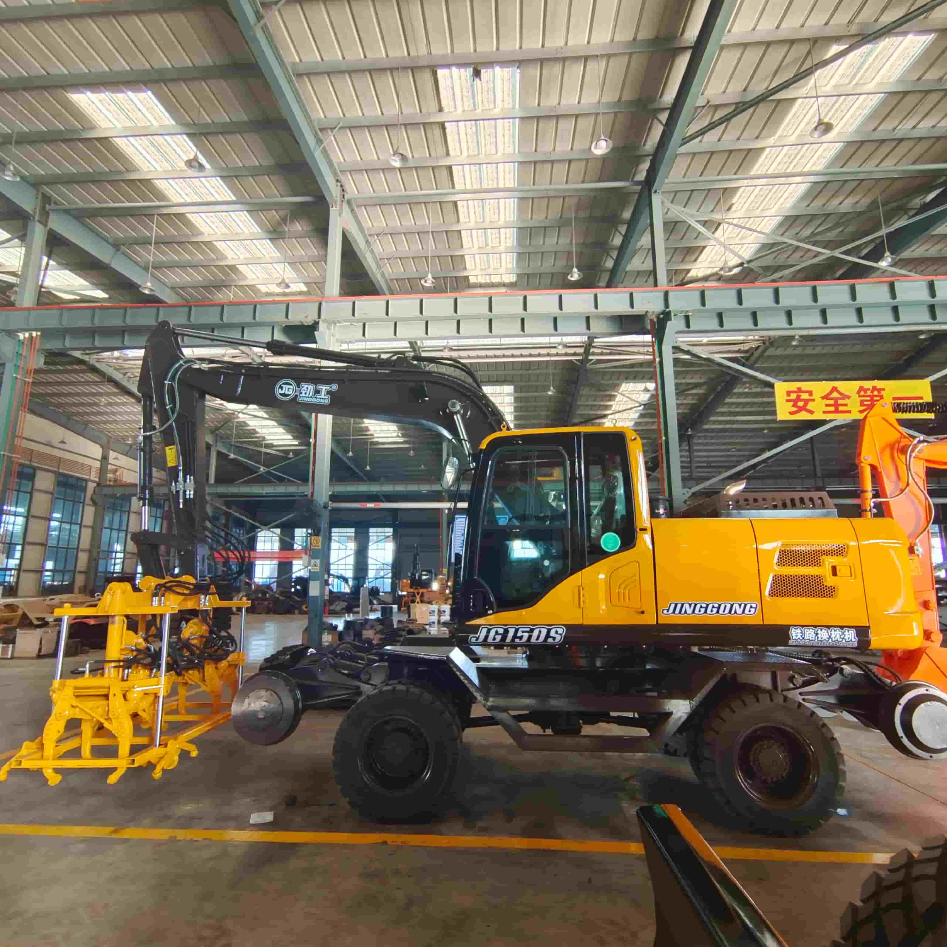 JG150S 15 ton double-headed railway excavator is an intelligent road maintenance equipment integrating track stamping and earth excavation. Through the collaborative operation of the front high-frequency stamping head and the rear multifunctional excavator arm, its rubber tire + track wheel dual mode chassis support, ensuring the stability of frozen soil, subway and other complex scenes. The maintenance efficiency is increased by 50% and the labor cost is saved by 45%.
