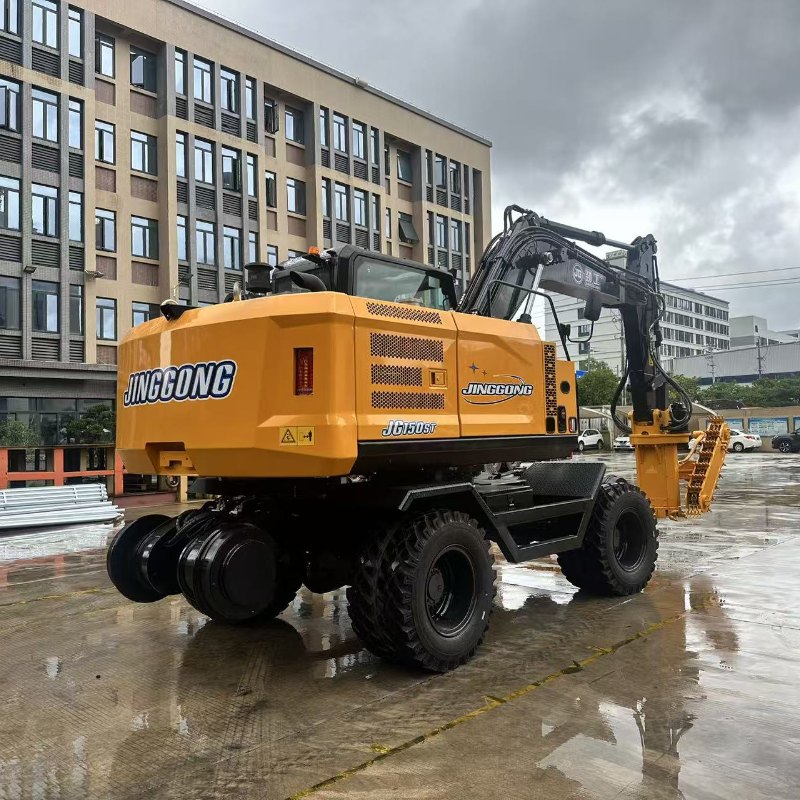 A Máquina de Troca de Dormentes Ferroviários JG150LT, uma escavadeira ferroviária de esteiras de última geração, é um divisor de águas no setor de manutenção ferroviária. Projetada com perfeição, ela oferece uma solução completa para operações de substituição de dormentes eficientes e eficazes.O design sobre esteiras do JG150LT proporciona excelente mobilidade em trilhos ferroviários. Ele pode navegar suavemente por diversos terrenos, incluindo superfícies irregulares e curvas. Isso permite que a máquina alcance todos os pontos da rede ferroviária, garantindo que nenhuma tarefa de substituição de dormentes fique fora de alcance. Seja uma linha principal de longa distância ou um desvio de curta distância, o JG150LT pode realizar o trabalho.
