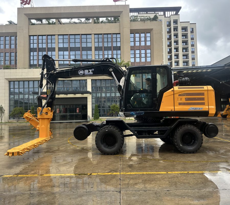 A escavadeira sobre rodas JG120S de 12 toneladas equipada com nivelador de materiais é uma máquina de construção inovadora projetada para nivelamento de carvão. Ela combina as funções duplas de mineração e nivelamento. Utiliza um chassi sobre rodas de 12 toneladas para alternar rapidamente entre rodovia e ferrovia, com sistema hidráulico eficiente e módulo de nivelamento inteligente. Ela pode concluir com precisão as tarefas de mineração, modelagem e nivelamento de superfície de pilhas de carvão, garantindo a distribuição uniforme dos materiais e a eficiência da manutenção dos trilhos. O design compacto e durável de toda a máquina é adequado para condições de trabalho complexas em minas de carvão, pátios ferroviários de carga e estações industriais. A eficiência operacional é aumentada em mais de 25% em comparação com equipamentos tradicionais, reduzindo a intervenção manual e os custos operacionais. É uma solução ideal para o manuseio moderno de materiais e manutenção de trilhos.