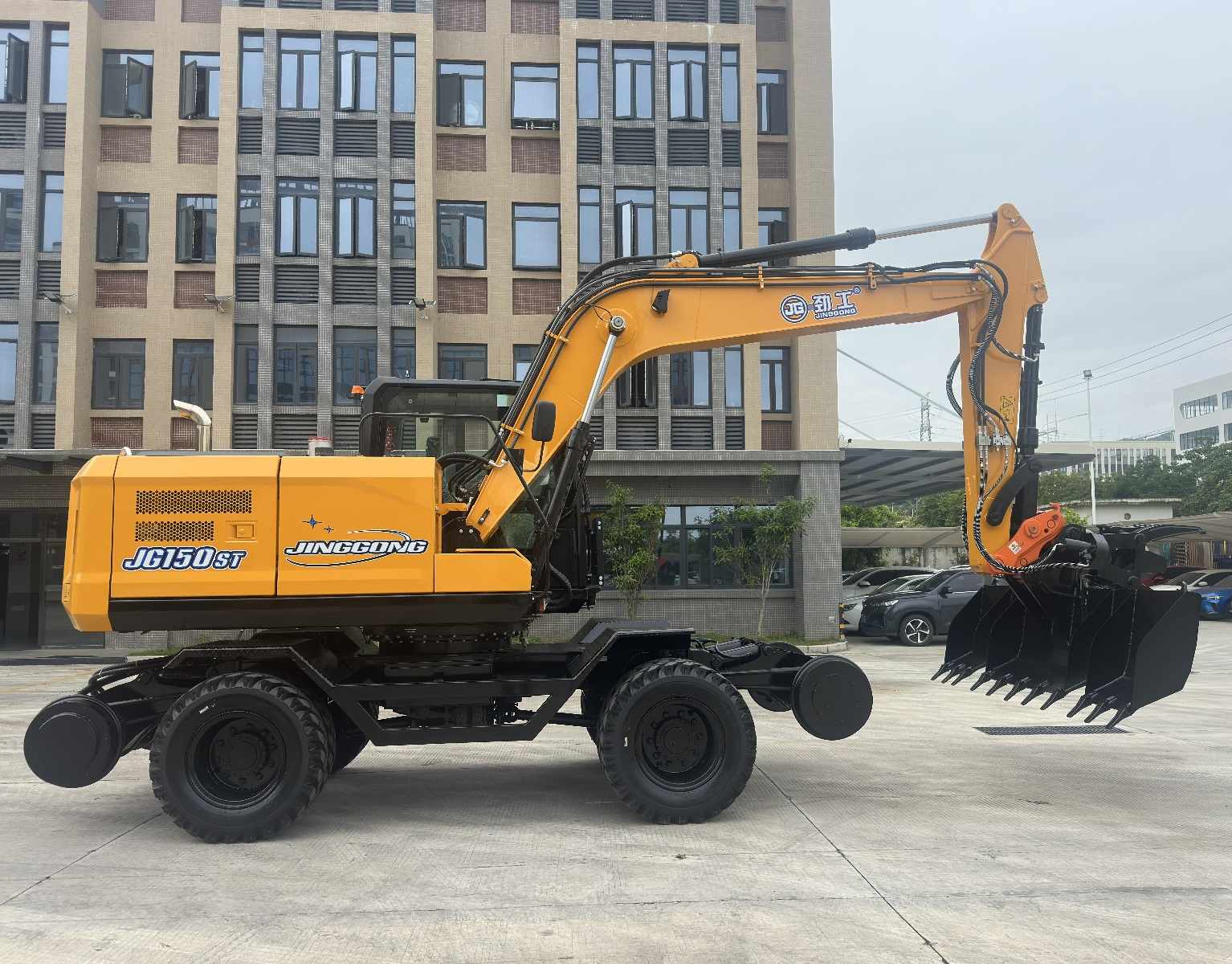 Sistema de atualização ferroviária JG150ST - Escavadeira de substituição de cavaletes sobre rodas de 15 toneladas para manutenção ferroviária.