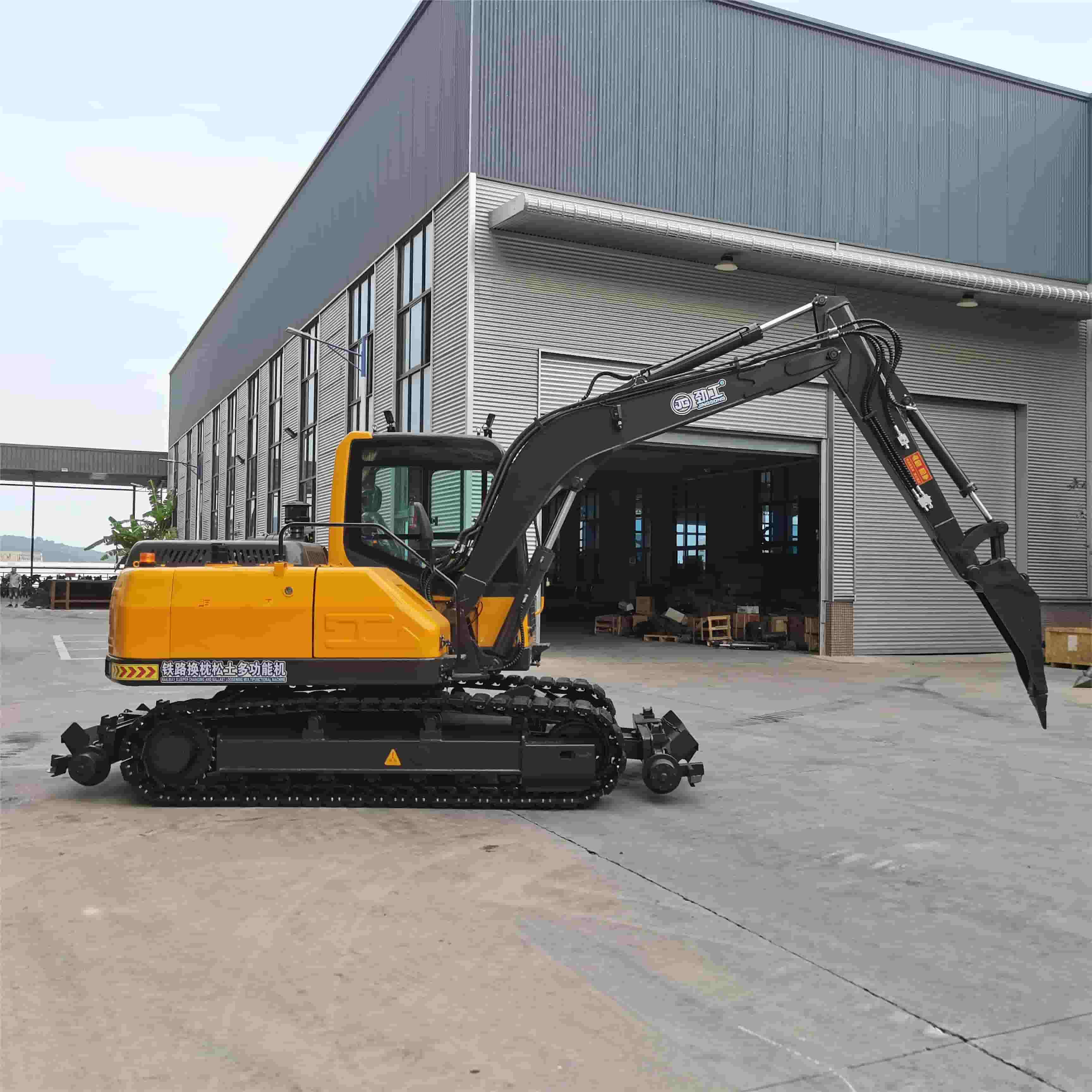 A Máquina de Troca de Dormentes Ferroviários JG150LT, uma escavadeira ferroviária de esteiras de última geração, é um divisor de águas no setor de manutenção ferroviária. Projetada com perfeição, ela oferece uma solução completa para operações de substituição de dormentes eficientes e eficazes.O design sobre esteiras do JG150LT proporciona excelente mobilidade em trilhos ferroviários. Ele pode navegar suavemente por diversos terrenos, incluindo superfícies irregulares e curvas. Isso permite que a máquina alcance todos os pontos da rede ferroviária, garantindo que nenhuma tarefa de substituição de dormentes fique fora de alcance. Seja uma linha principal de longa distância ou um desvio de curta distância, o JG150LT pode realizar o trabalho.